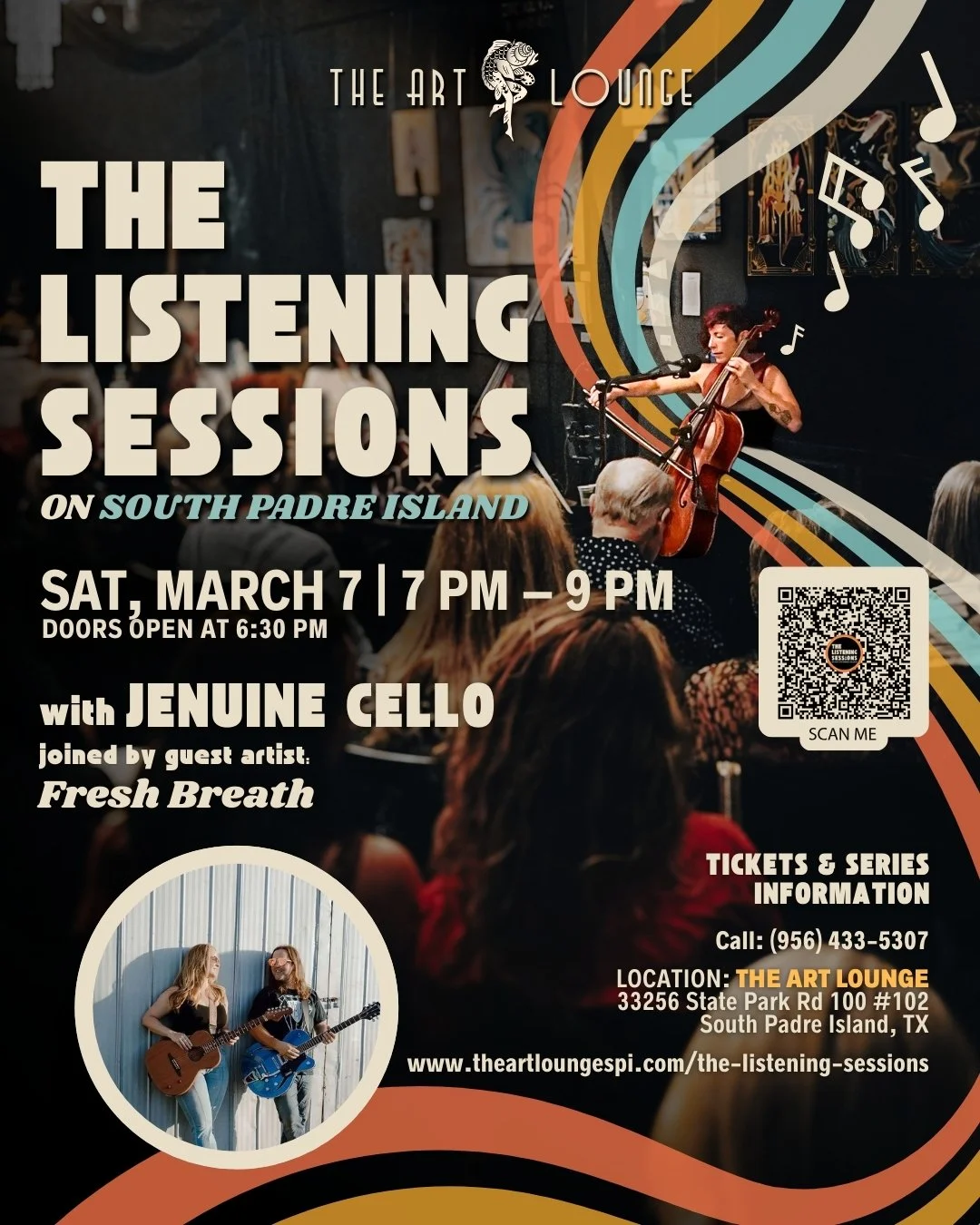 Together, Fresh Breath and Jenuine Cello create a collaborative performance where songcraft meets sonic exploration. Original songwriting is reimagined through layered cello lines and vocal harmonies, while carefully curated covers are transformed into fresh, unexpected arrangements that highlight the beauty of the ensemble. This is sure to be a powerful evening in our Listening Room at The Art Lounge!